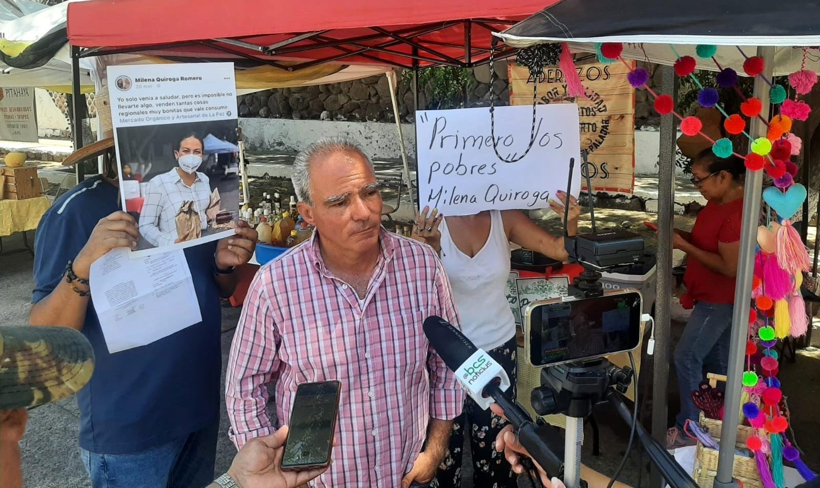 El MERCADO ORGÁNICO tiene 13 años de estar establecido, y quienes de eso viven han tenido que aguantar calores, fríos y lloviznas, por lo que ha decir de ellos no es justo que ahora de un plumazo les quieran quitarles su modo de sustento, y peor aún, pues al llegar el regidor ESTUARDO GONZÁLEZ RODRÍGUEZ al lugar justo cuando se estaba realizando la inspección, afirmó a los diversos medio de comunicación ahí presentes que los comerciantes sí están al día con los pagos de impuestos que exige el AYUNTAMIENTO DE LA PAZ, dando al traste con ese dicho todos los asegunes que la alcaldesa y sus esbirros traen entre manos simplemente para hostigarlos.