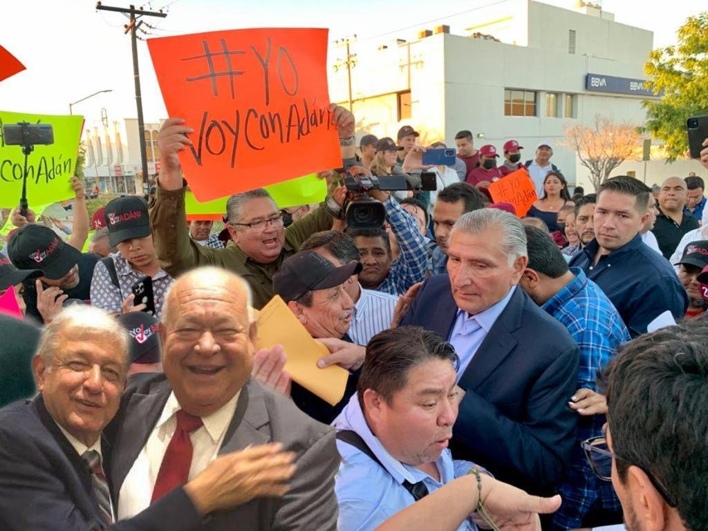 NUTRIDO GRUPO de seguidores del Secretario de Gobernación, quienes portaban pancartas y mantas alusivas “YO CON ADÁN”, “ADÁN PRESIDENTE”, serían parte del comité de recepción de LÓPEZ HERNÁNDEZ. Y por ahí se dejaron ver MARTÍN INZUNZA TAMAYO, CÉSAR ORDÓÑEZ, MIGUEL LEÓN e IGNACIO INZUNZA TAMAYO, entre otros.