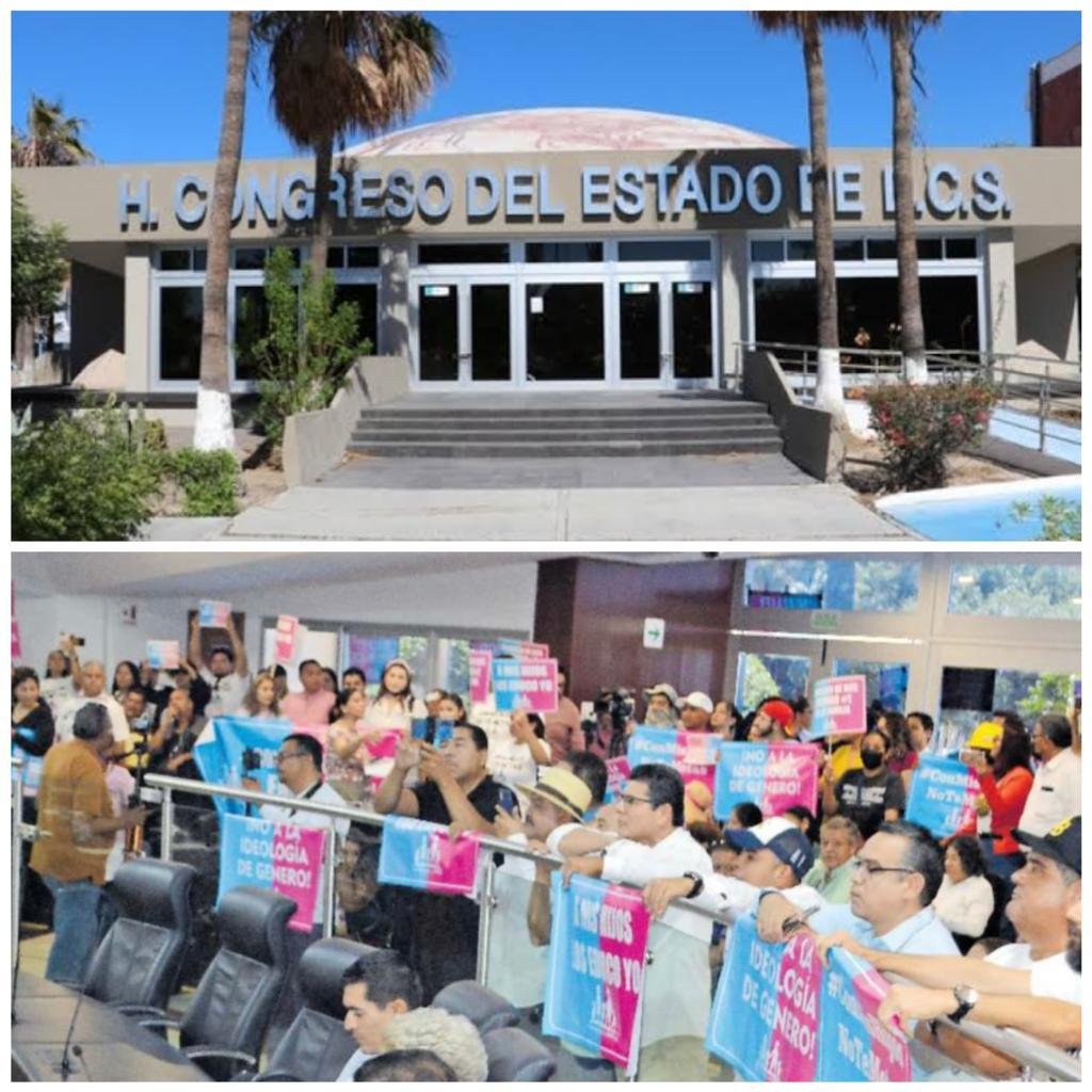 “CON LOS NIÑOS NO”, “CONGRESO DE BCS ENEMIGO DE LA FAMILIA” y “A MIS HIJOS LOS EDUCO YO”, pancartas y gritos que serían parte del escenario legislativo, donde las expresiones de los distintos grupos, irrumpirían la tranquilidad al interior del inmueble.