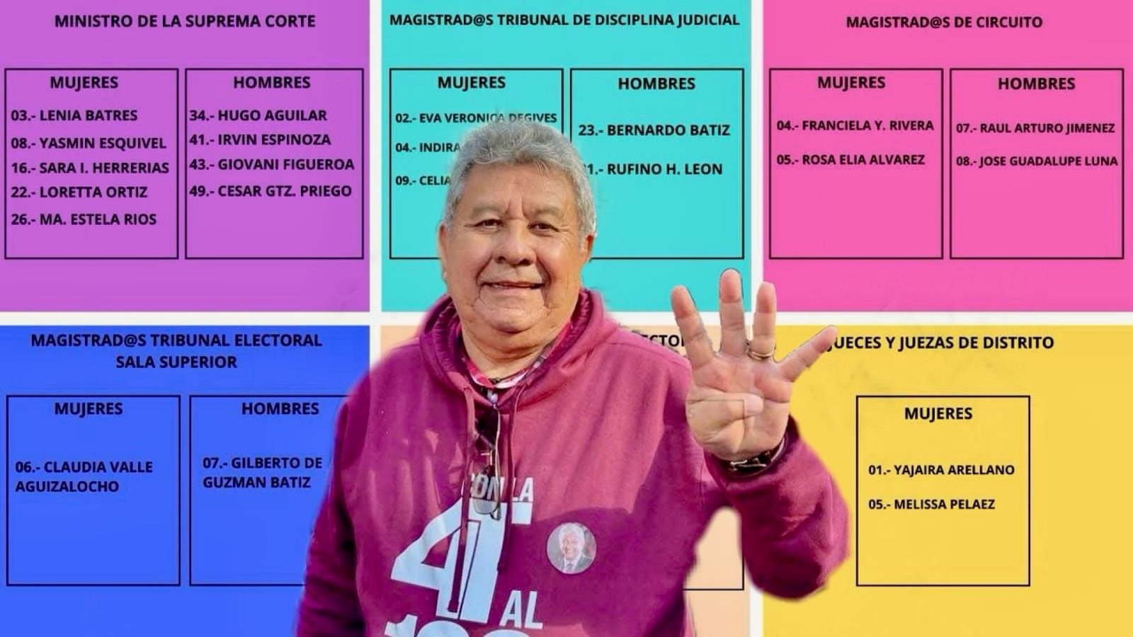 Y EN LA “LISTA” que sugiere el profe JOSÉ MARÍA “CHEMA” AVILÉS CASTRO, aparecen los nombres por los cuales pide el voto a su “palomilla”, para Magistrados de Circuito a favor de FRANCELIA RIVERA TOLEDO, ROSA ELIA ALVAREZ, RAÚL ARTURO JIMÉNEZ y JOSÉ GUADALUPE LUNA DURÁN, y para Jueces de Distrito para YAJAIRA ARELLANO MORALES y MELISSA PELÁEZ BADILLA.