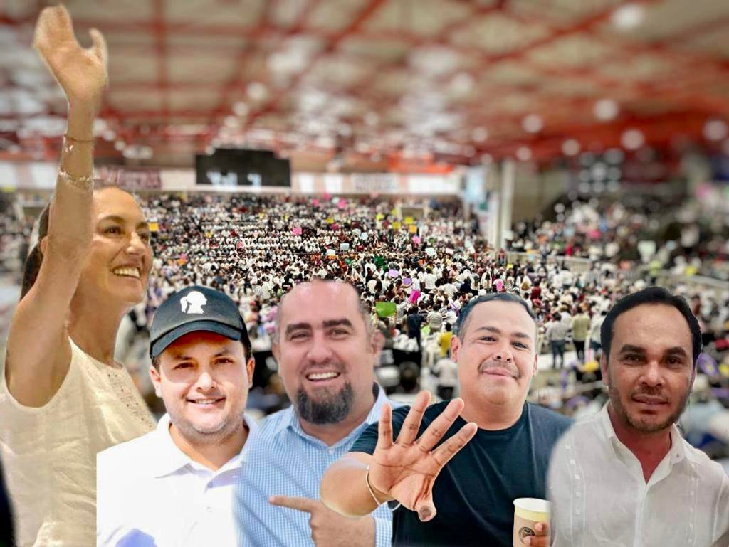 Y EN PUNTO de las cuatro de la tarde con veinte minutos llega SHEINBAUM PARDO al escenario en medio de algarabía, sube al estrado y agradece la presencia de los asistentes y de inmediato a lo que va: se dice defensora de la Cuarta Transformación, darle continuidad al trabajo logrado por ANDRÉS MANUEL LÓPEZ OBRADOR y reconoce los esfuerzos políticos e institucionales de VÍCTOR MANUEL CASTRO COSÍO y de MILENA QUIROGA ROMERO.