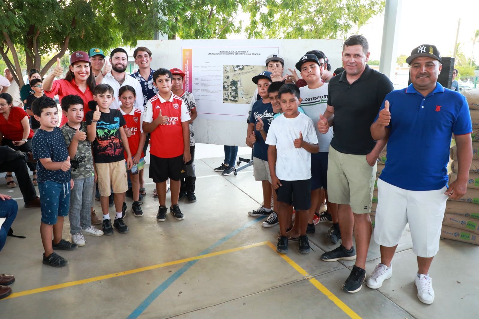 La presidenta municipal Milena Quiroga Romero en gira de trabajo efectuada por la Delegación de Los Planes, anunció la rehabilitación del campo de béisbol en la comunidad de Agua Amarga, entregando además apoyos por cerca de 2 millones de pesos.