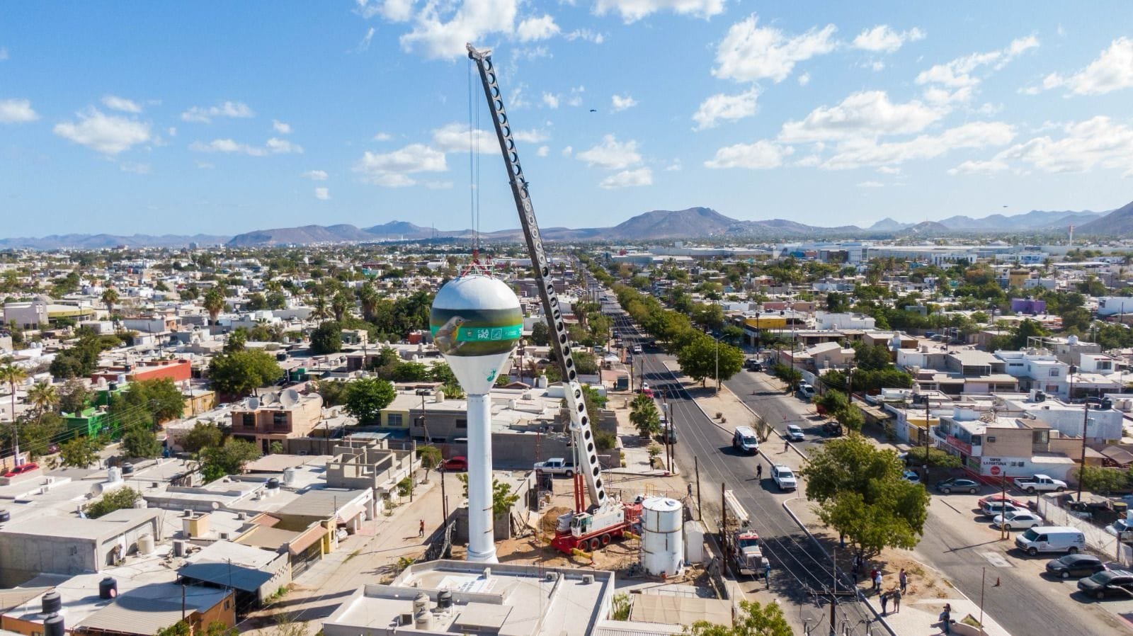Quiroga Romero explicó que el tanque elevado de la colonia Indeco fue uno de los primeros en entrar en operación el año pasado, cuenta con una capacidad de 250 metros cúbicos y una cisterna de 50 metros cúbicos, para su desarrollo se destinó una inversión superior a los de 13.3 millones de pesos. Su diseño está inspirado en la Mascarita, ave característica de humedales sudcalifornianos.
