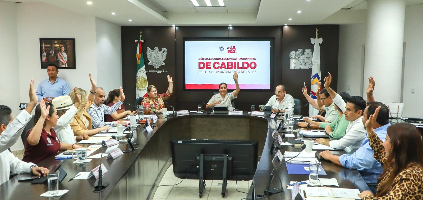 Durante la Décima Segunda Sesión Extraordinaria de Cabildo del Ayuntamiento de La Paz, se aprobó la desafectación de terrenos en las delegaciones de Todos Santos, El Pescadero y en la colonia Calafia, con el objetivo de destinarlos a la construcción de casas como parte del Programa de Vivienda para el Bienestar.
