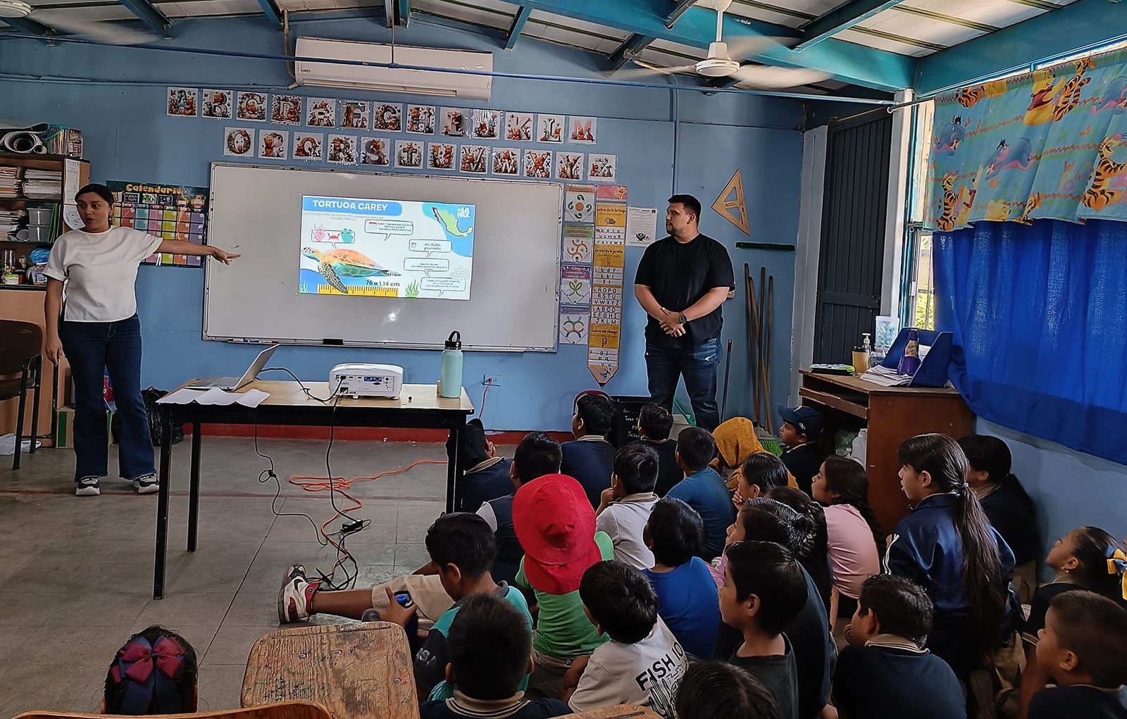 Informó lo anterior la titular de la dependencia, Natalia Ruffo Castaño, al detallar que las charlas de las especies marinas se llevaron a niños y niñas de las escuelas primarias de las comunidades de La Ventana, El Sargento, Agua Amarga, Todos Santos y El Pescadero, a quienes se les explicó la importancia del cuidado de las tortugas y de uno de los peces más grande del planeta.