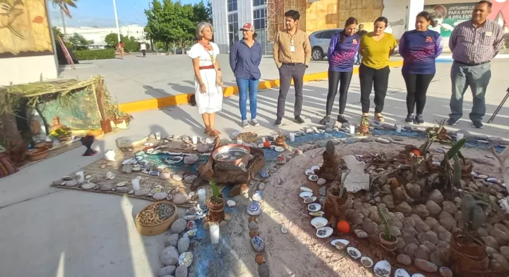 Con una ofrenda Pericú, instalada en la explanada del Ayuntamiento de La Paz, fue como iniciaron los festejos por Día de Muertos, fecha que marca una tradición muy antigua con raíces en la cultura indígena, a través de un concepto diferente pero con el mismo reconocimiento y respeto para recordar a los que ya no están.