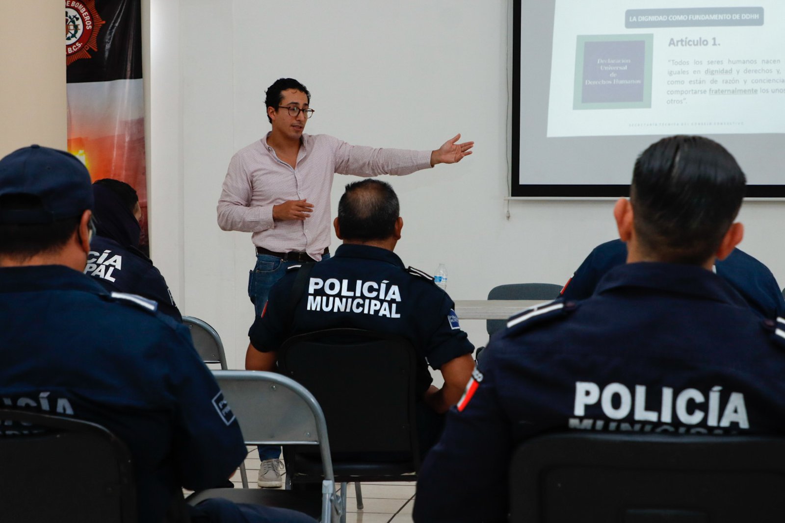 El Ayuntamiento de La Paz, a través de la Coordinación Municipal de Derechos Humanos en colaboración con la Dirección General de Seguridad Pública, Policía Preventiva y Tránsito Municipal, llevaron a cabo el taller de sensibilización “Atención a Infractores o Presuntos Infractores con Enfoque en Derechos Humanos” impartido por el maestro Rodrigo Molina Moctezuma, Subdirector de Atención a Personas y Comunidades en Situación de Vulnerabilidad de la Comisión Nacional de Derechos Humanos.