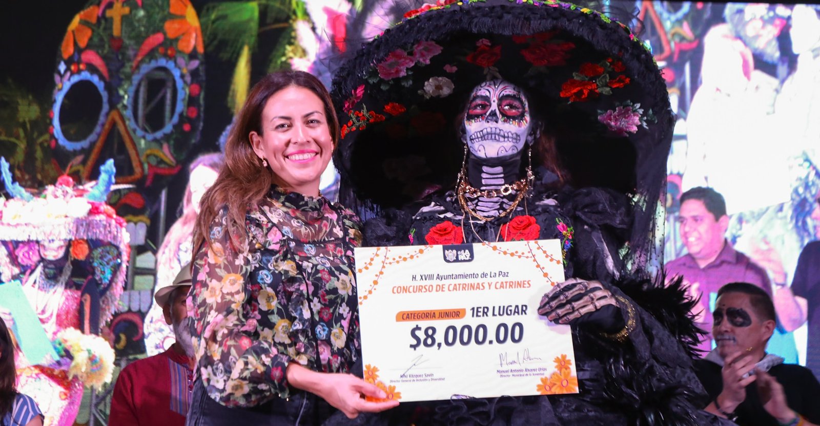 El Ayuntamiento de La Paz encabezado por la alcaldesa Milena Quiroga Romero, celebró las tradiciones mexicanas con la realización de los concursos infantil y juvenil de Catrinas y Catrines, organizados por el DIF Municipal y la Dirección Municipal de la Juventud, en el marco del Festival del Día de Muertos.