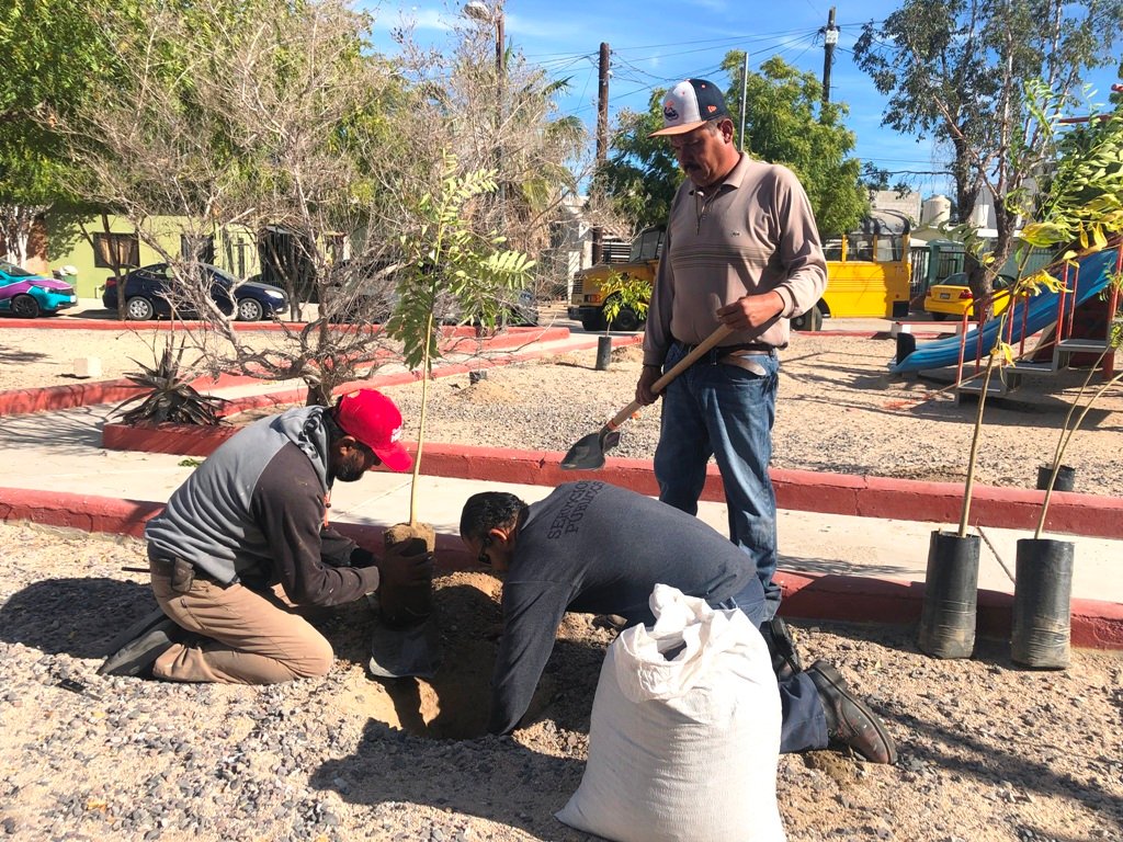 Señaló que estos trabajos iniciaron con una jornada de limpieza, deshierbe, así como poda de palmeras y árboles del parque, así como preparando el suelo donde se trasplantarían 15 ejemplares de pistache, se aplicó también composta y agua para que las plantas tengan los nutrientes necesarios para su desarrollo.