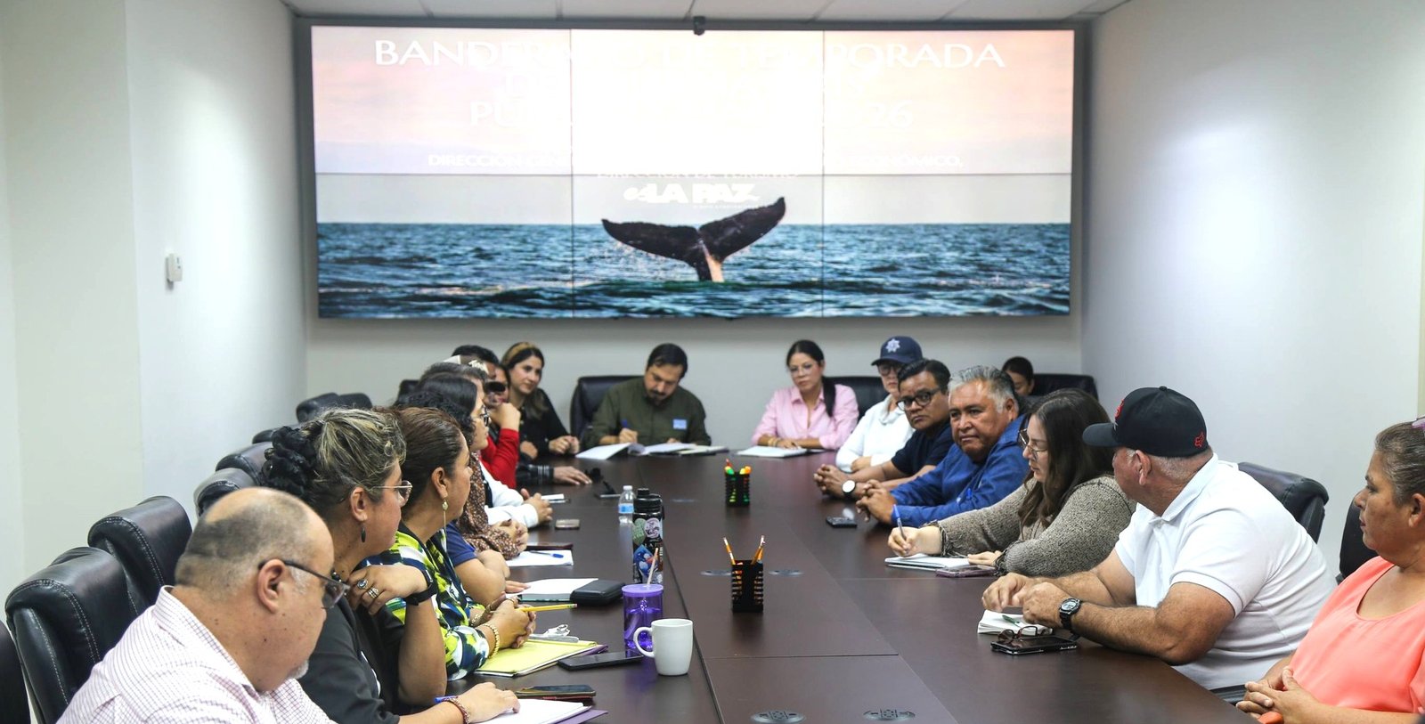 La directora de Turismo Municipal, Natalia Ruffo Castaño, encabezó una reunión de trabajo interinstitucional para coordinar acciones que permitan brindar una atención ordenada, segura y de calidad a las y los visitantes durante la temporada de avistamiento de la ballena gris en Puerto Chale.