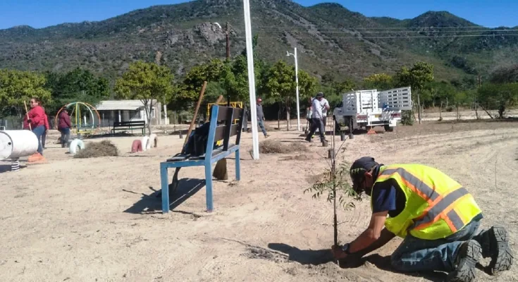 Cuadrillas de trabajadores del área de parques y jardines de la Dirección General de Servicios Públicos Municipales, realizaron trabajos de mantenimiento y reforestación en diferentes espacios públicos del ejido Álvaro Obregón, informó su titular, Daniel Cabral Ramírez.