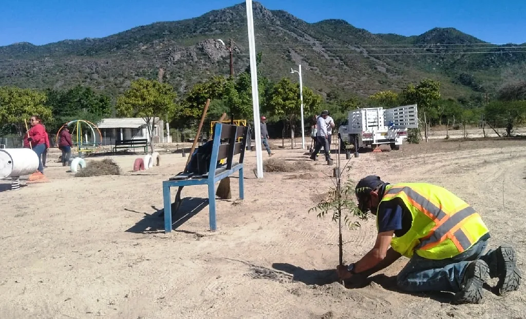 Cuadrillas de trabajadores del área de parques y jardines de la Dirección General de Servicios Públicos Municipales, realizaron trabajos de mantenimiento y reforestación en diferentes espacios públicos del ejido Álvaro Obregón, informó su titular, Daniel Cabral Ramírez.