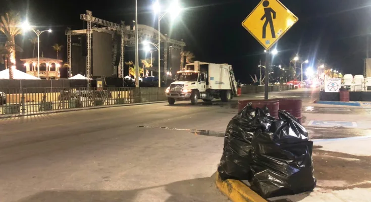 Personal operativo de la Dirección General de Servicios Públicos Municipales durante el inicio del Carnaval La Paz 2024 y al concluir el evento principal, realizó la limpieza en la zona del Malecón, recolectando 4.230 toneladas de residuos, dio a conocer su titular, Daniel Cabral Ramírez.