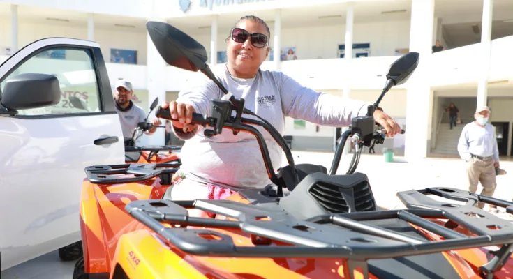 Con una inversión de 5 millones 749 mil 943 pesos, la Presidenta Municipal, Milena Quiroga Romero, hizo una primea entrega de ocho unidades automotrices al personal de la Zona Federal Marítimo Terrestre de La Paz, de las cuales tres corresponden a camionetas modelo Frontier 4×4 2023 y cinco cuatrimotos.