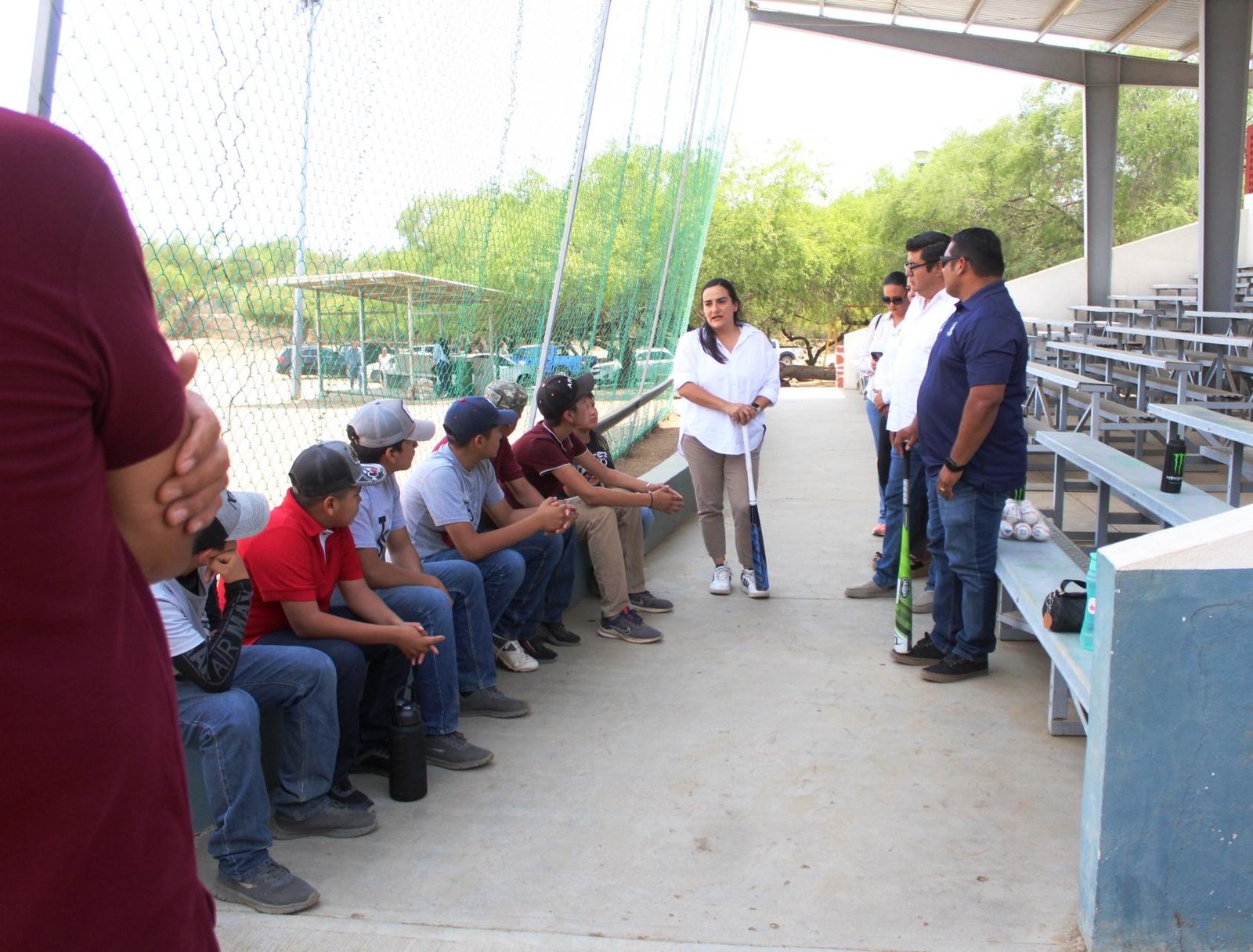 La directora de Inclusión y Diversidad, Amor Fenech Montaño, entregó material deportivo al equipo de béisbol pertenecientes al Centro Impulso de El Triunfo, quien fue acompañada por el director municipal del Deporte, Guillermo Ortalejo Hernández.