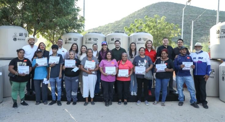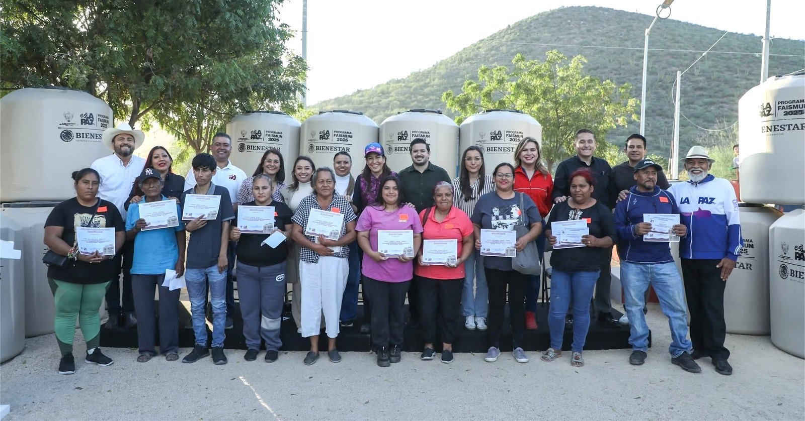 Como parte de los apoyos que brinda el Ayuntamiento de La Paz para promover el cuidado y almacenamiento en óptimas condiciones del agua, la presidenta municipal, Milena Quiroga Romero, encabezó la entrega de 27 tinacos en la colonia Lagunitas, durante las audiencias ciudadanas del Día del Pueblo.
