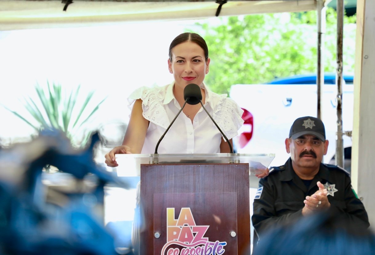Con recurso del Ayuntamiento de La Paz, este jueves la presidenta municipal Milena Quiroga Romero acompañada del Secretario de Seguridad Pública, Capitán Luis Alfredo Cansino Vicente, la Diputada Guadalupe Vázquez Jacinto, la Directora de Seguridad Pública, Policía Preventiva y Tránsito Municipal, Teniente de Navío Rut de la Fuente Velázquez, el Secretario Jorge Pavel Castro Ríos, regidores y regidoras hicieron entrega de un vehículo oficial a la Dirección de la Policía Auxiliar, marca Toyota línea Hillux 2023, con una inversión de 870 mil pesos.