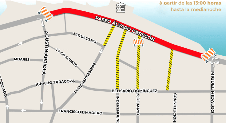 De acuerdo a lo anterior, el viernes 2 de mayo, para el evento de Homenaje al Tiburón Ballena se interrumpirá el tráfico a las 11:00 horas en el Paseo Álvaro Obregón, en el tramo de Agustín Arriola a 5 de Mayo, reactivando el paso de vehículos de manera habitual a las 21:00 horas.
