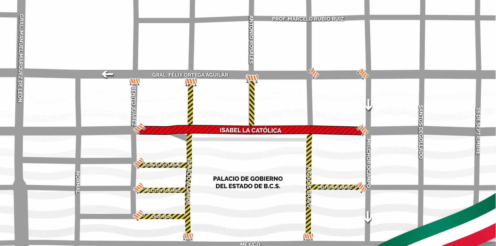 Mientras que ese mismo día, a partir de las 16:00 horas, implementarán el cierre de las vialidades aledañas al Palacio de Gobierno en las calles Isabel La Católica, desde Benito Juárez hasta Melchor Ocampo; de igual forma, las calles de Ignacio Allende y Nicolás Bravo, en sus tramos desde México a Félix Ortega.