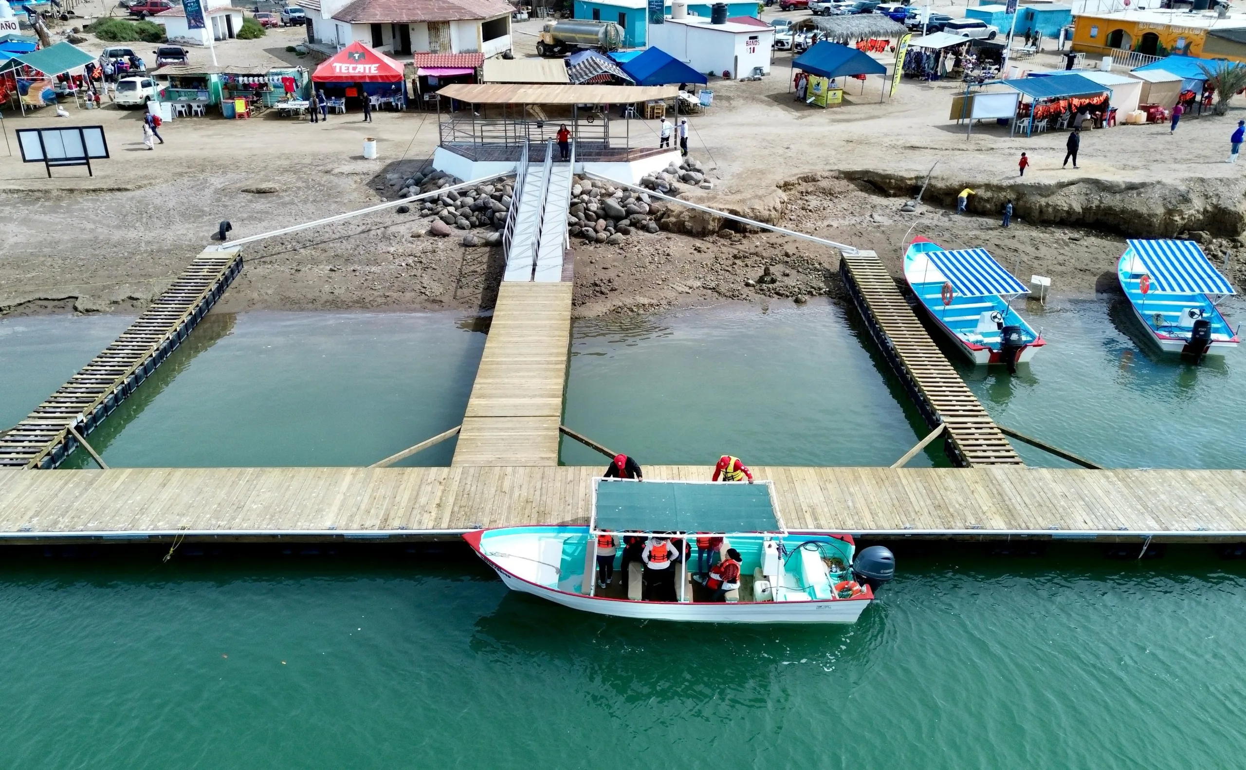 Fue en enero de 2022 cuando hicimos el compromiso de arreglar el muelle y hacer uno de calidad, no fue tarea fácil por todo lo que esto involucraba, hicimos varias visitas para explicarles sobre las mareas y vientos, finalmente entre todos llegamos a un acuerdo, después se presentó el proyecto ejecutivo y el recurso. En el muelle que se tenía antes sólo cabía una embarcación, ahora hay una estructura estable e incluyente con mayor capacidad. Es histórico el respaldo que han dado estas administraciones federal, estatal y municipal a Puerto Chale”, explicó.