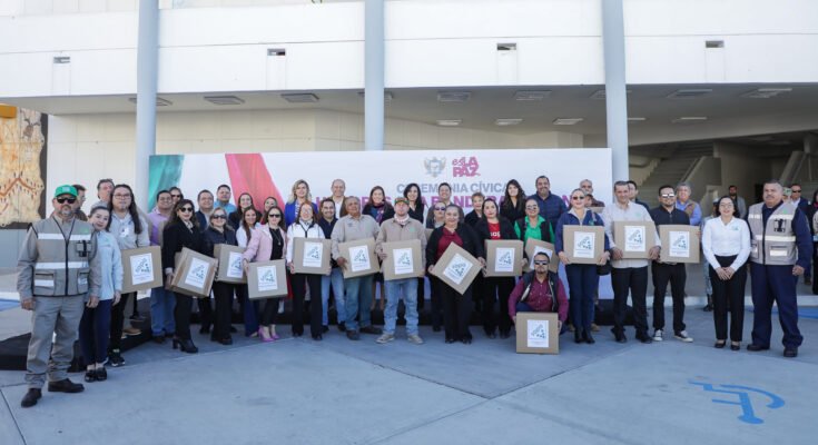 Como parte del compromiso de la administración municipal para fortalecer las condiciones laborales y optimizar la prestación de servicios públicos, la Alcaldesa de La Paz, Milena Quiroga Romero, encabezó la entrega de uniformes al personal del Organismo Operador Municipal del Sistema de Agua Potable, Alcantarillado y Saneamiento.