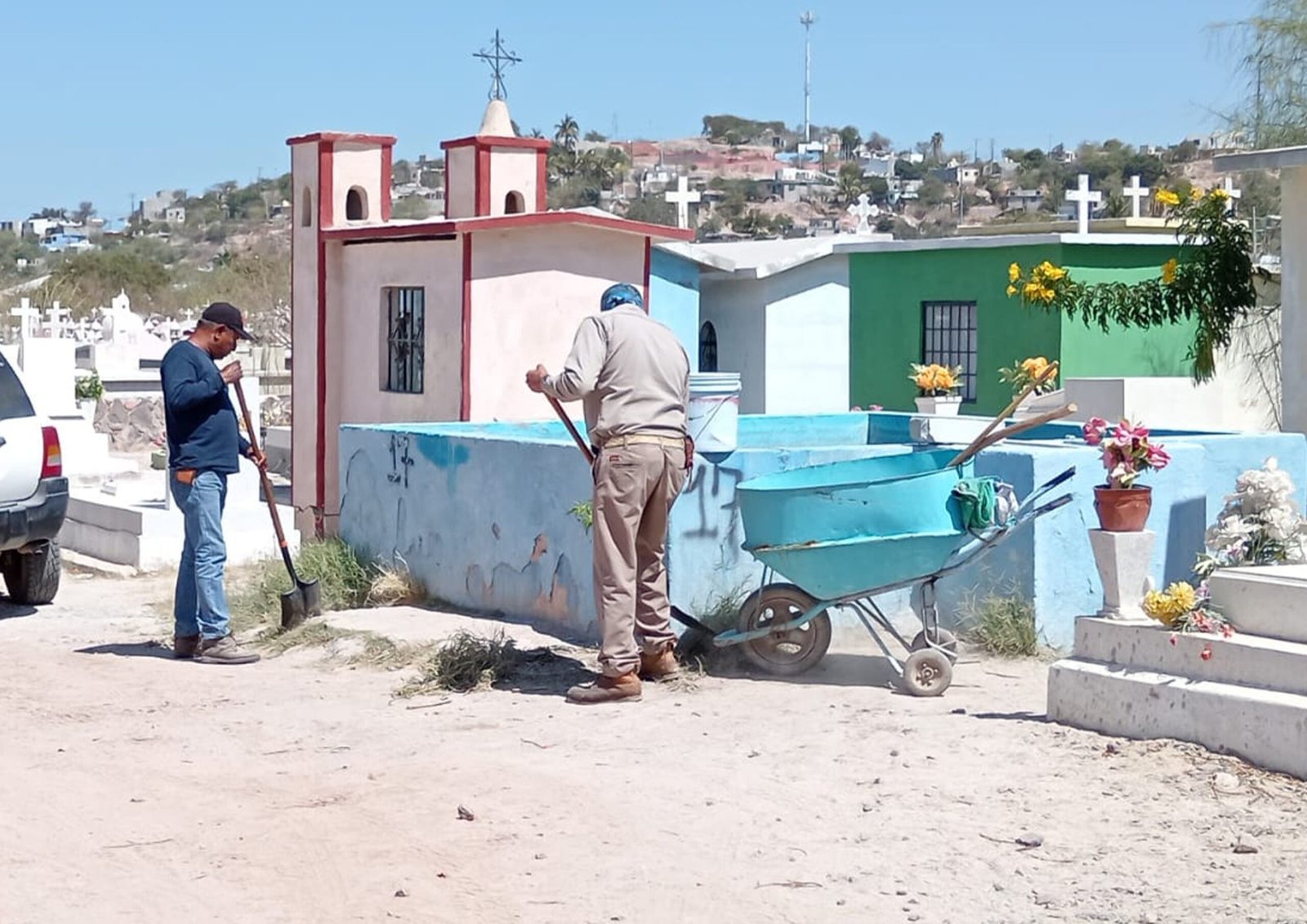 Como parte de los trabajos de limpieza permanente en espacios públicos de La Paz, cuadrillas de trabajadores del área de barrido manual de la Dirección General de Servicios Públicos Municipales, estarán realizando trabajos de apoyo en los panteones municipales con motivo de los preparativos para el Día de las Madres.