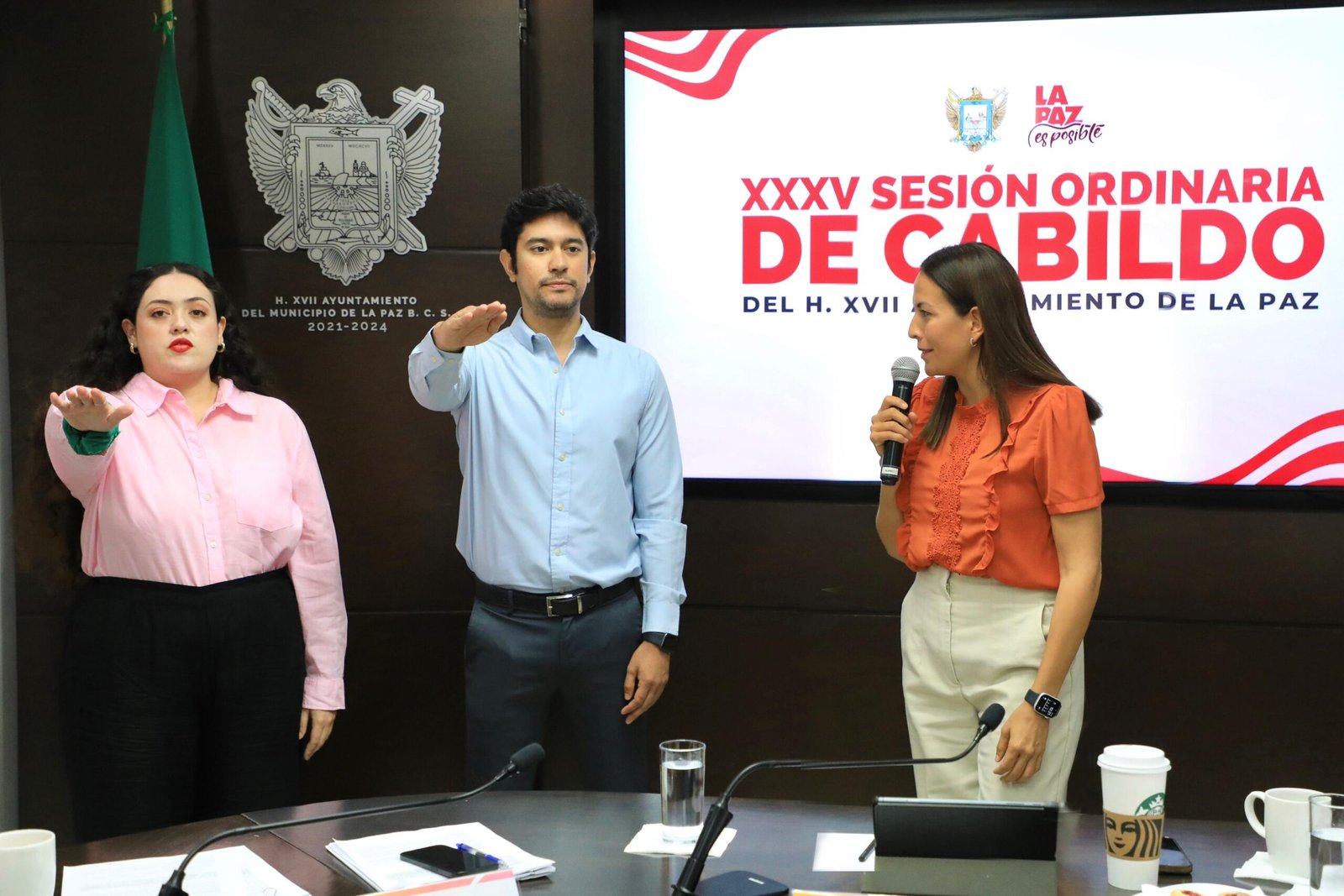 En sesión ordinaria de Cabildo del Ayuntamiento de La Paz, la Alcaldesa, Milena Quiroga Romero, tomó protesta a quienes asumirán las responsabilidades de la Dirección General del Instituto Municipal de las Mujeres y de la Tesorería Municipal, Christa González Robinson y Jassiel Enríquez Varela, respectivamente.