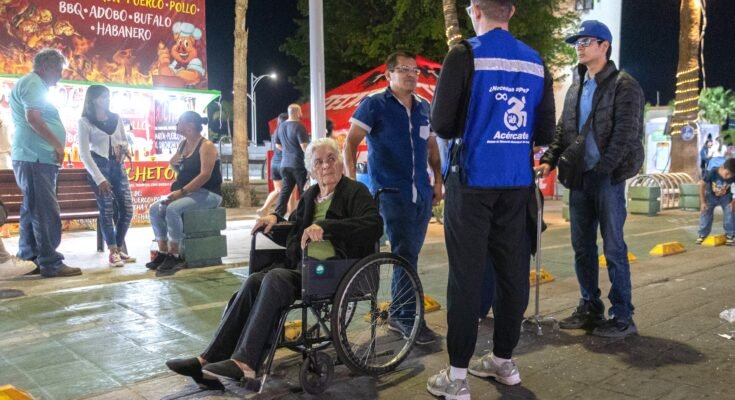 • El personal será identificado con chalecos azules recorre el malecón para asistir a personas con discapacidad y facilitar su acceso a los espectáculos.