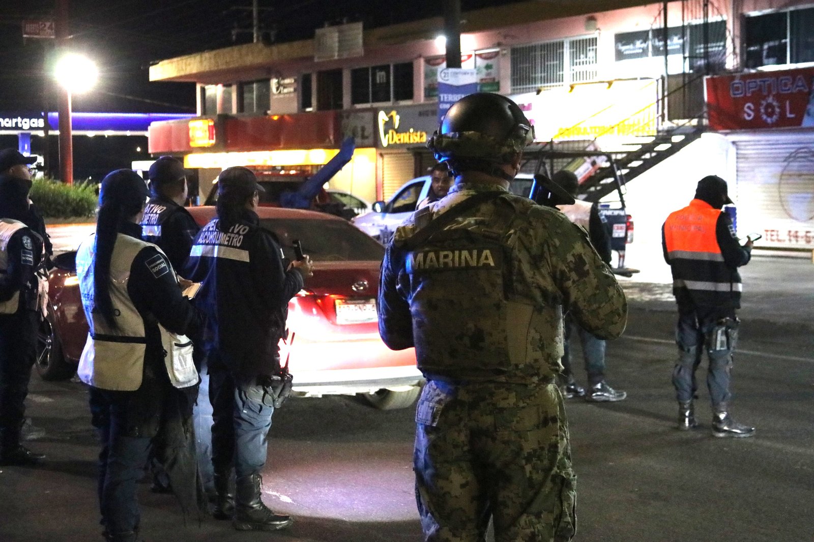 Personal de la Policía Municipal en conjunto con efectivos de MARINA instaló un filtro en el cruce del Boulevard Agustín Olachea y Tenochtitlán, durante la noche del sábado y la madrugada del domingo, realizando 334 entrevistas y 13 boletas de infracción por conducir en estado de ebriedad y 13 vehículos se retiraron de circulación durante el dispositivo de seguridad.
