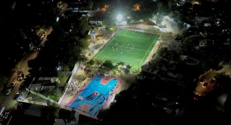 El espacio deportivo ahora cuenta con una cancha de fútbol con césped sintético, protecciones en las porterías, juegos infantiles, un área de calistenia, alumbrado público, señalización, además de una cisterna y un sistema de bombeo de agua.