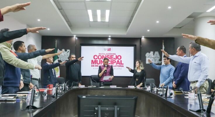 La presidenta municipal Milena Quiroga Romero, tomó protesta a los integrantes del Consejo Municipal de Mejora Regulatoria durante la primera sesión de este órgano efectuada en la Sala de Cabildo del Ayuntamiento de La Paz.