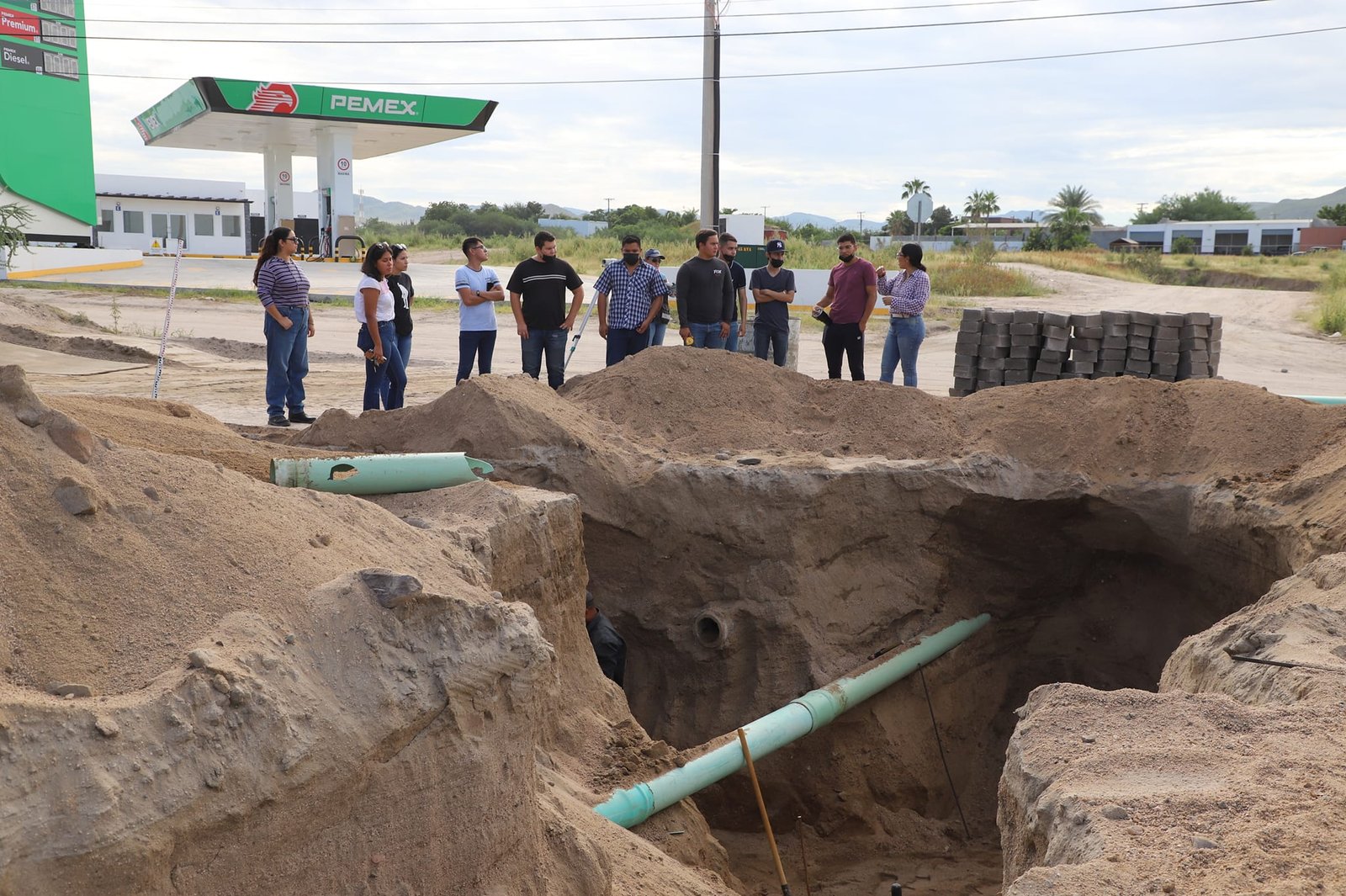 En el recorrido por las interconexiones que tendrá esta obra, la titular estuvo acompañada de estudiantes de la carrera de ingeniería civil del Instituto Tecnológico campus La Paz a quienes les mostró las características que tendrá la instalación de tubería sanitaria en mil 158 metros lineales de longitud, la construcción de 17 pozos de visita con brocales para tráfico pesado, además del relleno y compactado de las zonas de excavación.