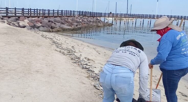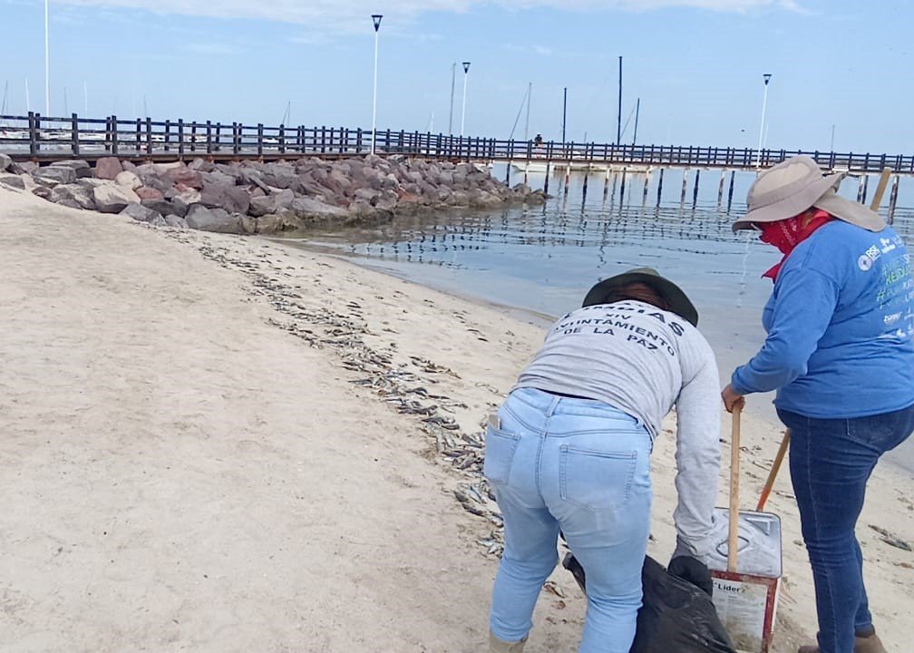Luego de que cientos de peces muertos aparecieron en la playa del malecón y otras zonas costeras de la ciudad de La Paz, personal operativo de la Zona Federal Marítimo Terrestre en coordinación la Secretaría de Marina, la Administración Portuaria Integral, la Procuraduría Federal de Protección al Ambiente, concesionarios de actividades turísticas y sociedad civil, recolectaron alrededor de cinco toneladas de desechos orgánicos durante las labores de limpieza.