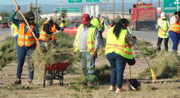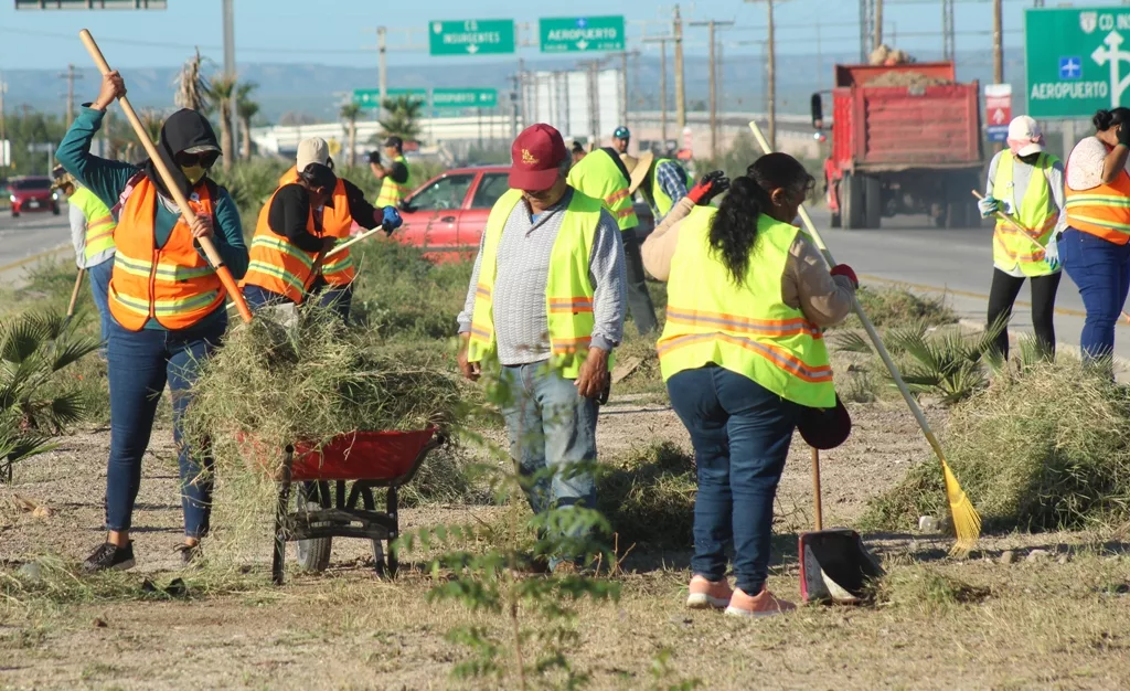 Cerca de un centenar de trabajadores divididos en cuadrillas del área de barrido manual y empleo temporal de la Dirección General de Servicios Públicos Municipales y maquinaria pesada, llevan a cabo trabajos de limpieza y deshierbe de camellones y accesos laterales de la carretera Transpeninsular desde la altura del Parque Cola de La Ballena hasta el entronque al aeropuerto, informó su titular, Daniel Cabral Ramírez.