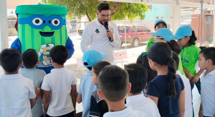 * Como parte del evento en la primaria “Hugo César Piñeda Chacón”, se develaron 12 contenedores para fomentar la separación de residuos entre los estudiantes