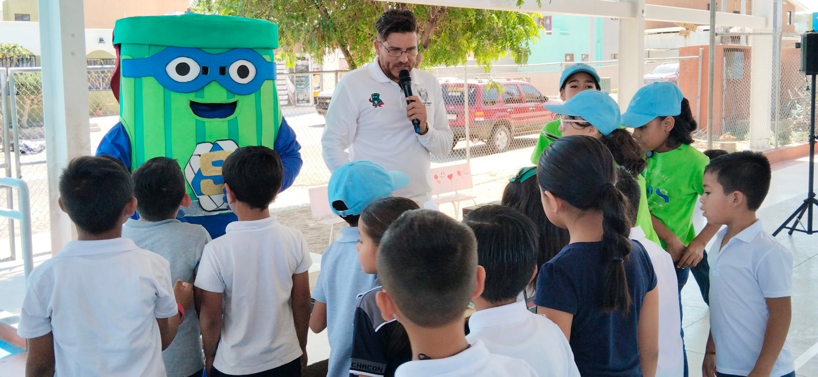 Como parte del evento, se develaron 12 contenedores, 6 donados por la Dirección General de Sustentabilidad, y 6 adquiridos por la mesa directiva de la primaria, mismos que fueron pintados y rotulados por personal de la dependencia municipal, en los que las y los alumnos podrán depositar plásticos (azul), papel y cartón (amarillo), así como residuos orgánicos y posteriormente se celebró la Feria del Medio Ambiente en la cancha de usos múltiples, en donde las diferentes instituciones colocaron un stand donde brindaron información a través de material didáctico, infografías y diversas actividades.