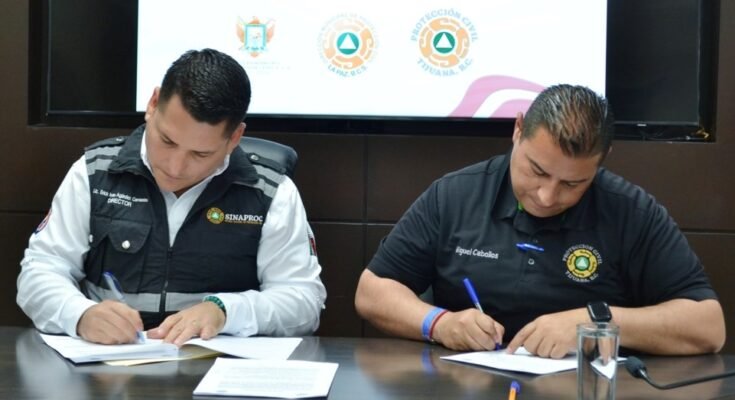 En un esfuerzo por seguir fortaleciendo la preparación y respuesta ante emergencias, el titular de Protección Civil Municipal, Erick Iván Agúndez Cervantes, firmó la carta de colaboración interinstitucional con el director de Protección Civil Tijuana, Miguel Ángel Ceballos Ramírez.