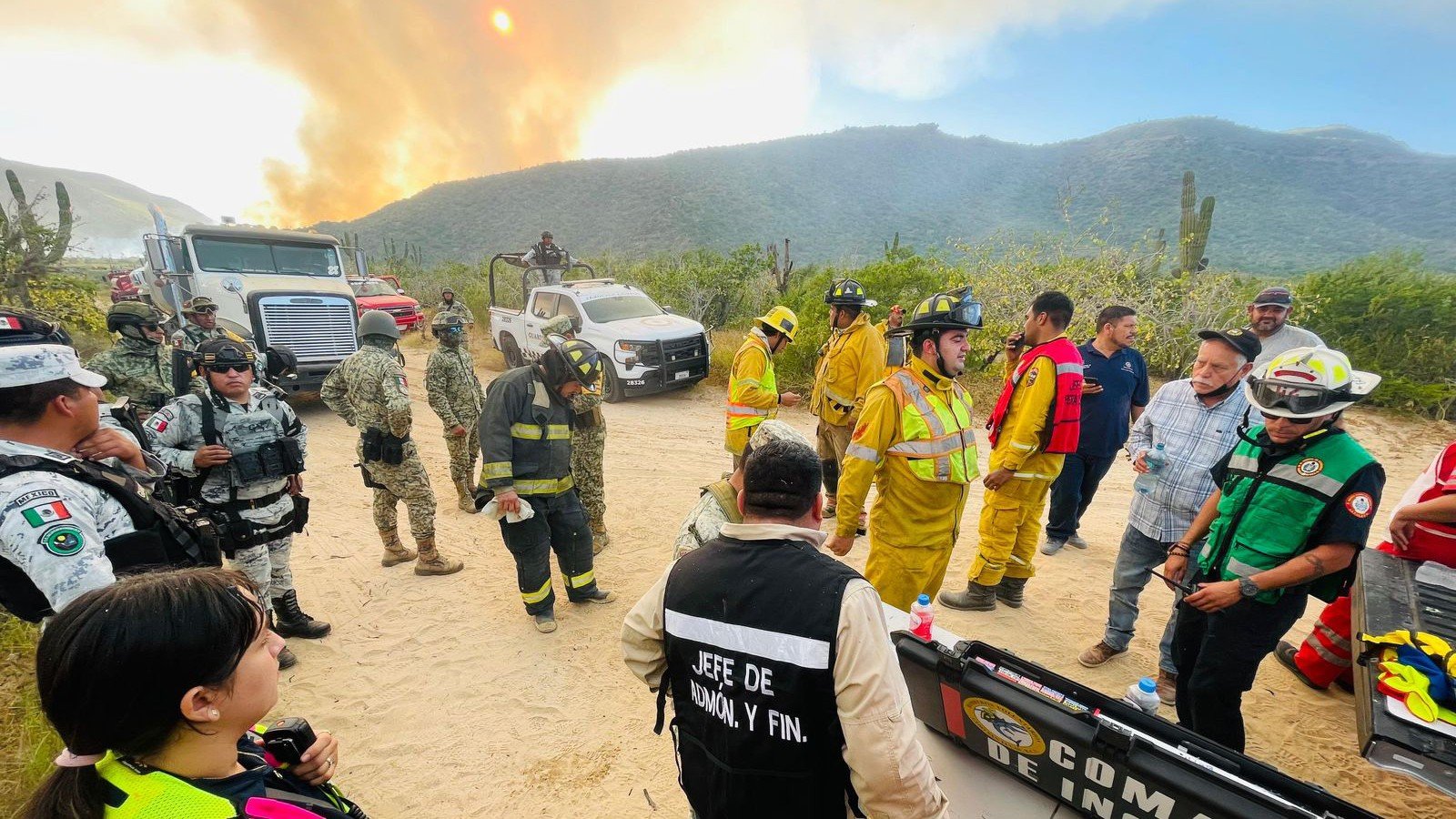 Al respecto, el Comandante General, Juan Jesús Ruíz Redona, explicó que, una vez recibido el reporte, unidades bomberas de la delegación de Todos, se trasladaron al sitio, en donde posteriormente arribaron unidades de La Paz, Pescadero y Cabo San Lucas, para contener el siniestro que debido a las condiciones adversas del clima, se propagó rápidamente.