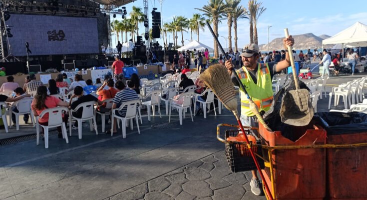 Durante las fiestas del 490 aniversario de la Fundación de La Paz, personal operativo de la Dirección General de Servicios Públicos Municipales llevó a cabo acciones permanentes de limpieza y mantenimiento en el malecón, garantizando un entorno ordenado y seguro para quienes disfrutaron de las festividades.