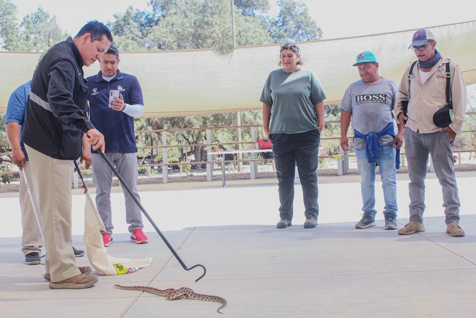 “Agradecemos a los instructores Gabriel Robles y Daniel Vizcarra, de la Dirección de Protección Civil Municipal, por impartir este curso ya que estas capacitaciones no solo fortalecen las habilidades de nuestro equipo en el manejo adecuado de fauna silvestre, sino que también refuerzan nuestro compromiso con la seguridad y el bienestar de quienes visitan este lugar”, dijo.