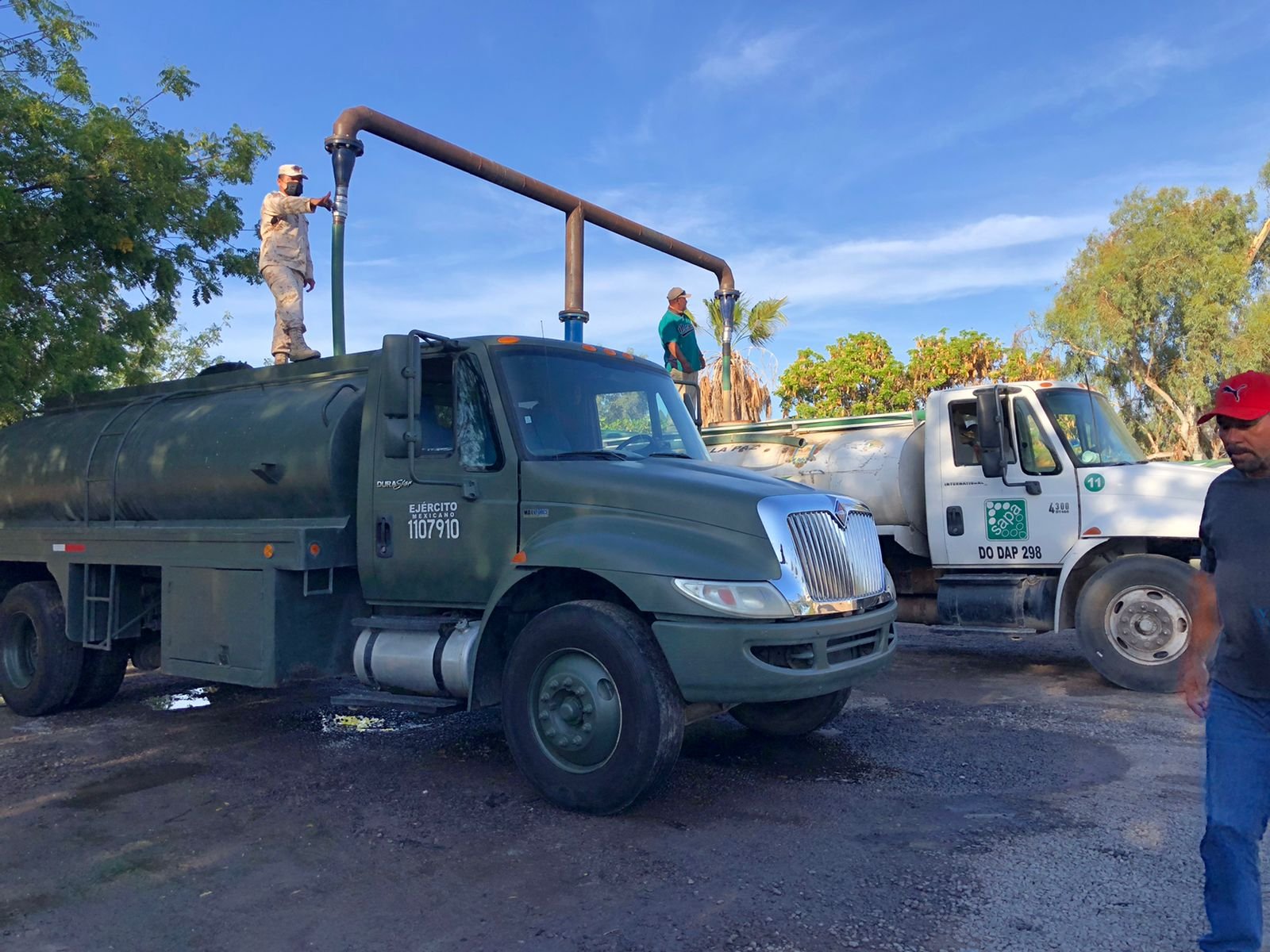 Durante el primer día de actividades de la Alianza SEMAR, SEDENA, API, CONAGUA y Bomberos, impulsada por el Ayuntamiento de La Paz fueron distribuidos más de 600 mil litros de agua en el arranque del Plan Emergente de Dotación de Agua Potable, mismos que fueron suministrados en las colonias y comercios con mayor desabasto.