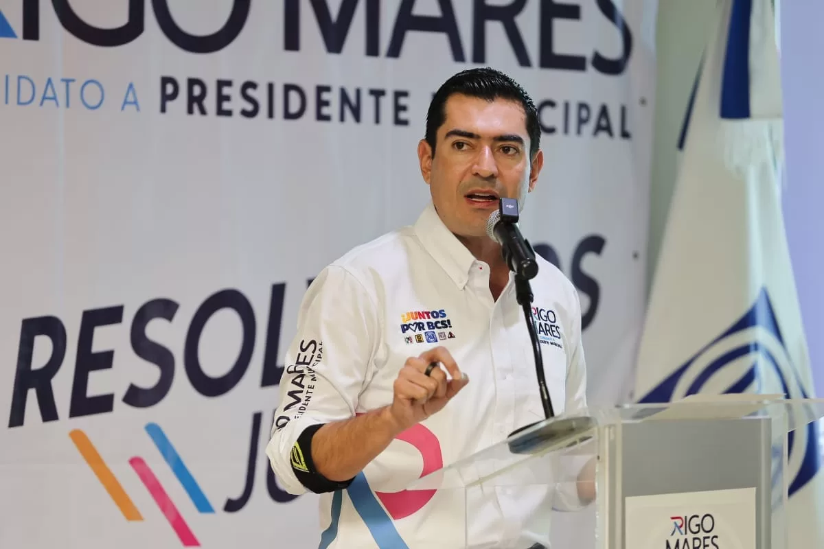 • Regresaremos a La Paz los mil 300 litros de agua por segundo que recibía hace 6 años, aseguró el candidato a la alcaldía, Rigoberto Mares.