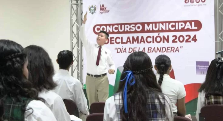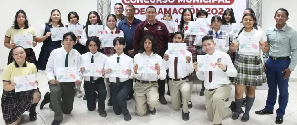 Con la participación de 20 jóvenes alumnos de diferentes escuelas, se llevó con éxito el Concurso de Declamación 2024 en su Etapa Municipal en el marco del Día de la Bandera, organizado por la Dirección Municipal de la Juventud, en la cual las y los estudiantes dieron realce al lábaro patrio, dio a conocer su titular, Zamir Patrón Murillo.