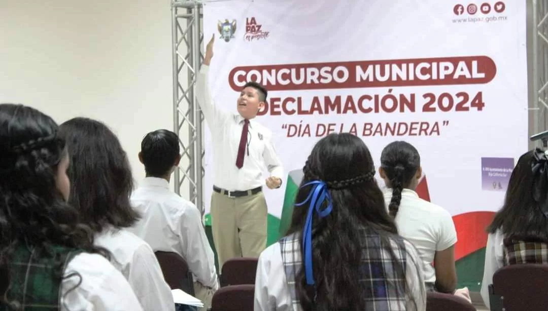Con la participación de 20 jóvenes alumnos de diferentes escuelas, se llevó con éxito el Concurso de Declamación 2024 en su Etapa Municipal en el marco del Día de la Bandera, organizado por la Dirección Municipal de la Juventud, en la cual las y los estudiantes dieron realce al lábaro patrio, dio a conocer su titular, Zamir Patrón Murillo.