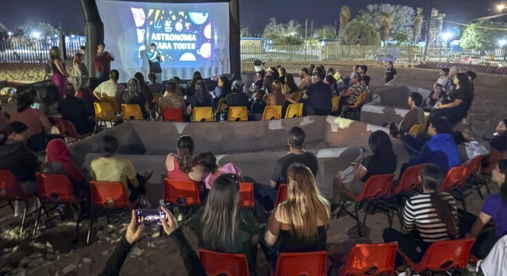 Durante la noche, personas con discapacidad acompañadas de familiares y amigos, tuvieron la oportunidad de observar la Luna y el planeta Júpiter a través de un telescopio proporcionado por el Centro de Investigación Científica del Sur Urbano y Desértico.