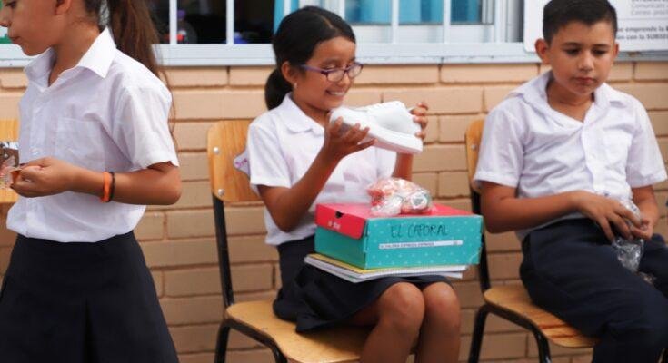 El Sistema Municipal DIF La Paz lleva a cabo la segunda entrega del programa de zapatos escolares para niñas y niños, conocido como “Zapatón” en la subdelegación de El Caporal, comentó la directora general, Carla Jonguitud.