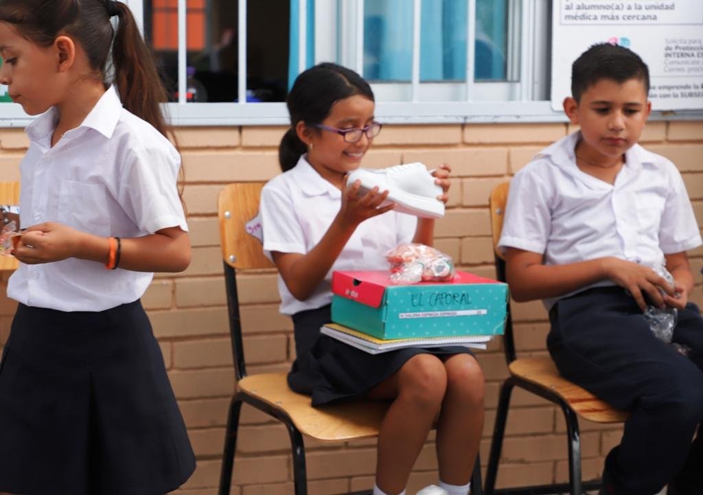 El Sistema Municipal DIF La Paz lleva a cabo la segunda entrega del programa de zapatos escolares para niñas y niños, conocido como “Zapatón” en la subdelegación de El Caporal, comentó la directora general, Carla Jonguitud.