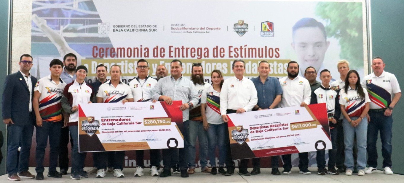Al respecto, mencionó que después de un proceso que llevó a cabo el Instituto Sudcaliforniano del Deporte (INSUDE), deportistas y entrenadores de La Paz fueron reconocidos por el Gobierno del Estado por aportar medallas de oro, plata y bronce, “estamos muy contentos de poder acompañar a nuestros deportistas y entrenadores paceños que después de un proceso que realizó INSUDE, recibieron estímulo económico por sus resultados deportivos en los Nacionales y Paranacionales CONADE 2023”.