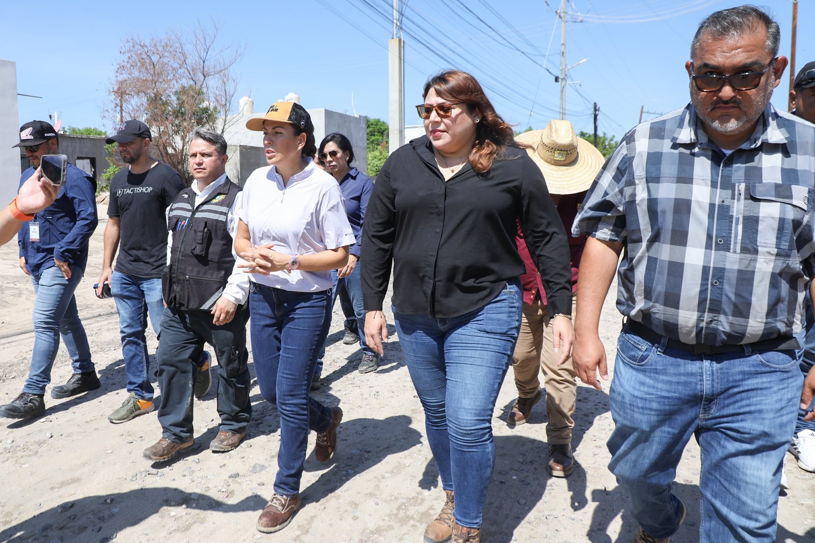 Acompañada por representantes del gobierno estatal, la alcaldesa visitó las colonias Rinconada Las Californias, San Rafael, el acceso a Invi Chametla, Camino Real, Esmeralda e Índigo, Invi Mezquitito y Las Californias. Puntos en los que ya se encuentran operando retroexcavadoras, moto conformadoras y maquinaria pesada proporcionada por el Gobierno del Estado, el Municipio y particulares.