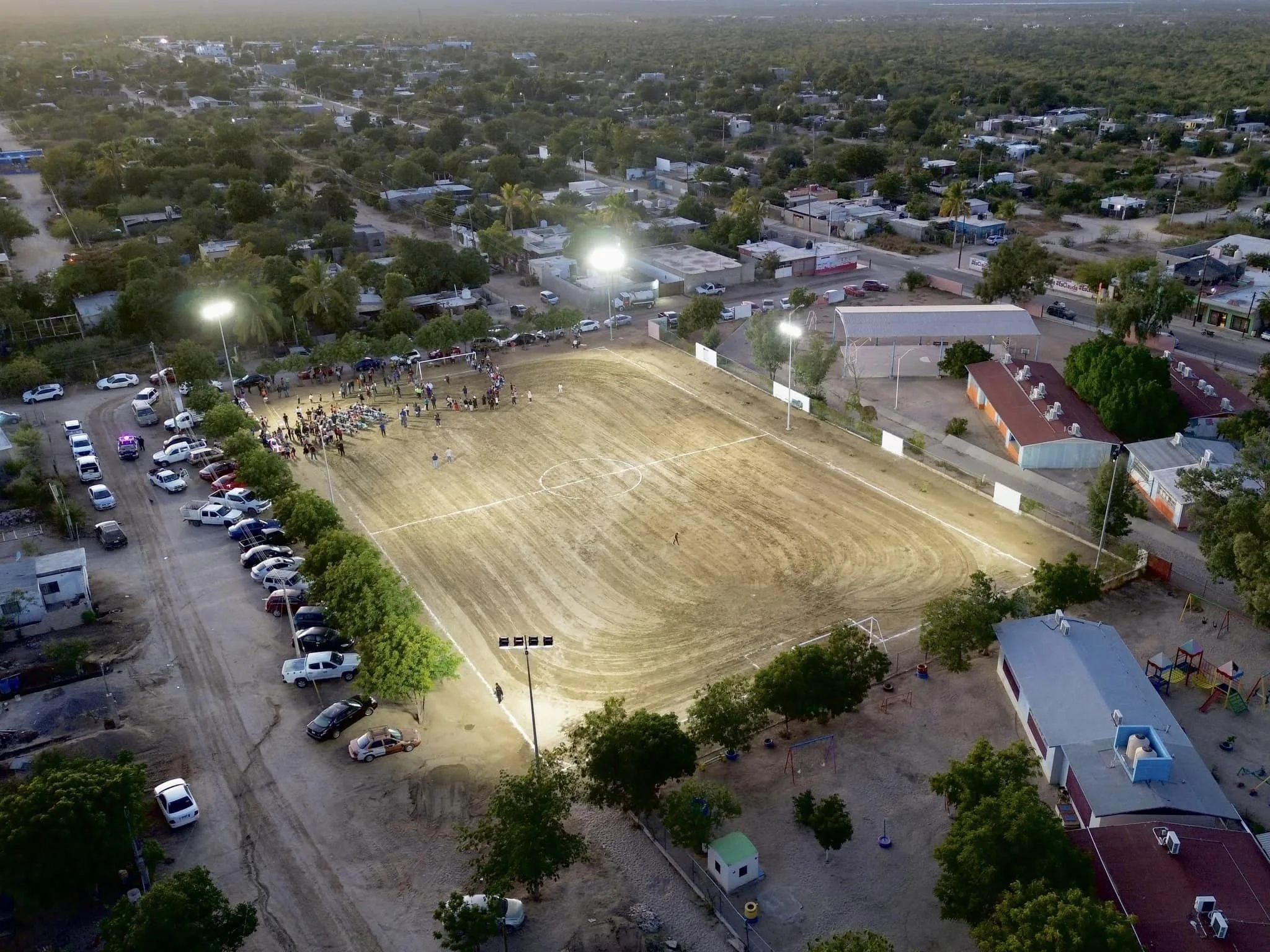 En total se acondicionaron 4 mil 180 metros cuadrados de superficie con labores de limpieza y nivelación en la cancha de fútbol; además, la Dirección General de Gestión Integral de la Ciudad se encargó de instalar toda la conexión eléctrica con 24 reflectores de 480 watts con registros, bases y postes de 12 metros de altura, control de alumbrado, canalización y cableado, base y murete de medición, centro de carga, alimentación.